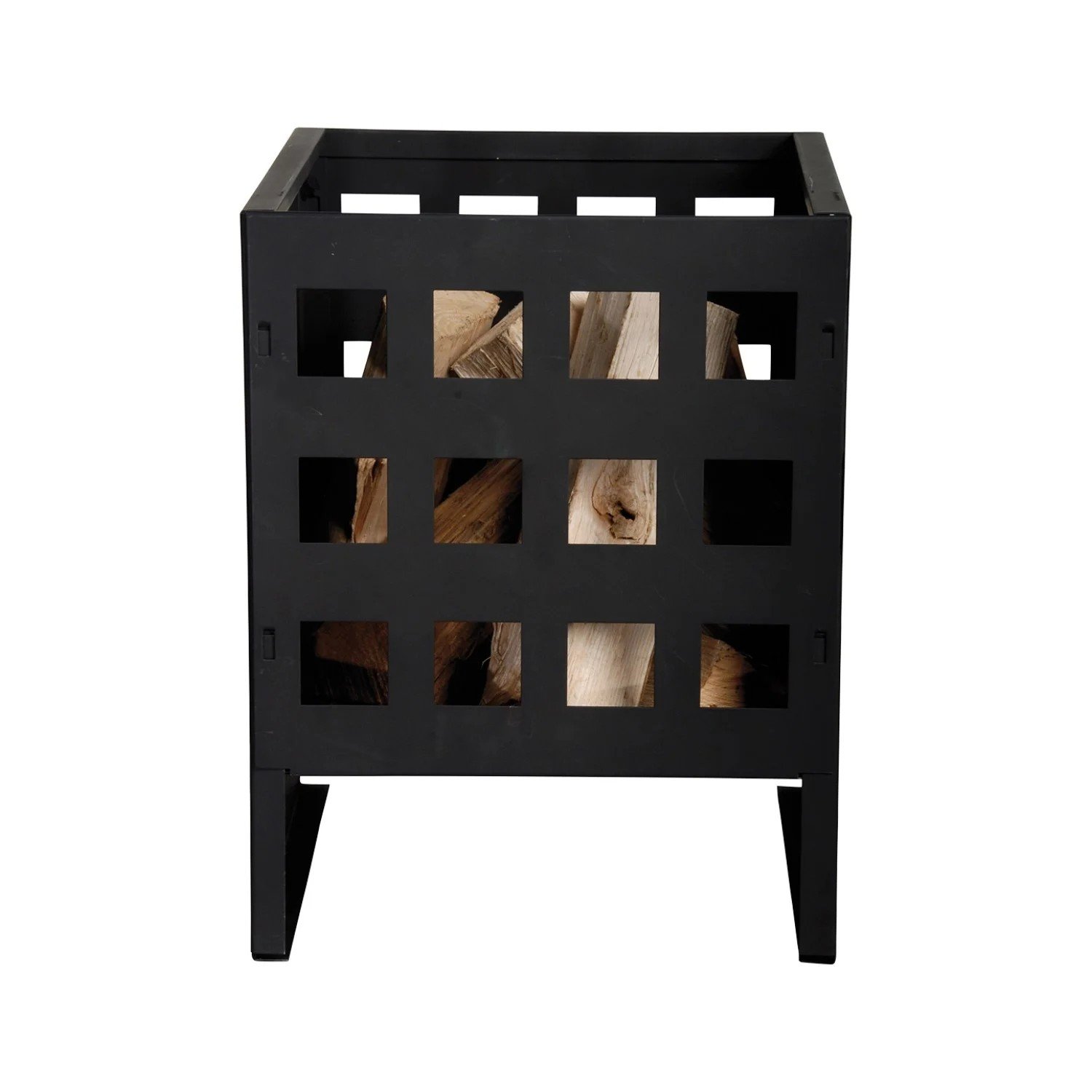 Brasero moderne carrée avec de grands trous. Petite brasero pour un feu cosy et chaleureux dans le jardin ou sur la terrasse. Peut être facilement rangée.
