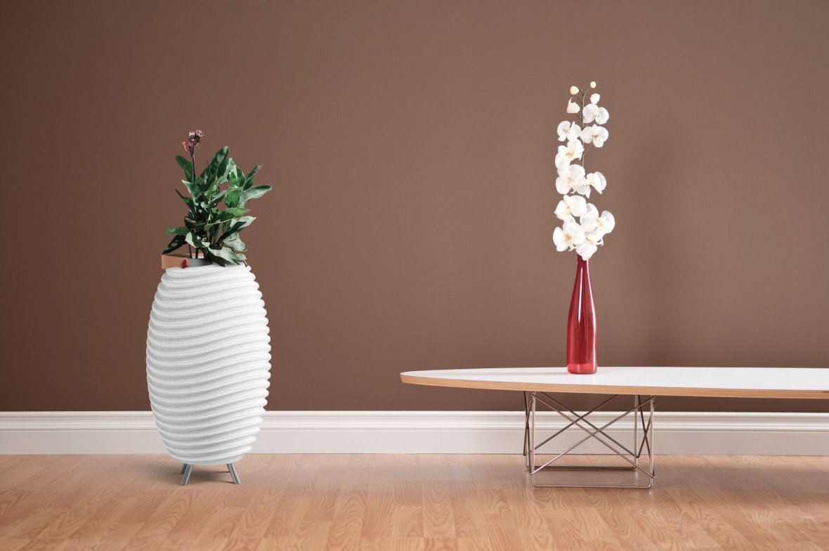 La lampe design Synergy de Kooduu a plusieurs fonctions. Ce gadget est donc bien plus qu’une simple lampe de jardin. Vous pouvez écouter de la musique via Bluetooth ou garder votre bouteille de vin au frais dans le réservoir situé au-dessus. Vous pouvez même mettre un pot de fleurs sur cette lampe.