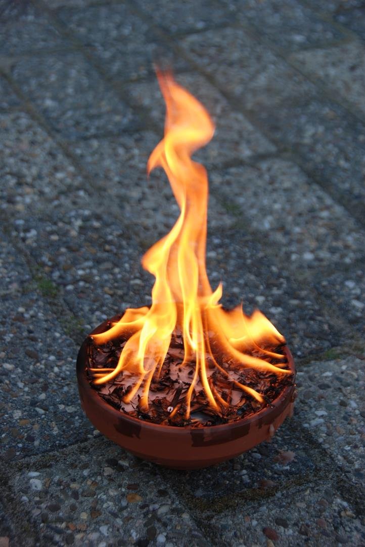 Allumage : Placez le flambeau à l'extérieur dans un brasero, un chauffe-terrasse ou tout simplement seul ou sur le support adéquat. Allumez la mèche.