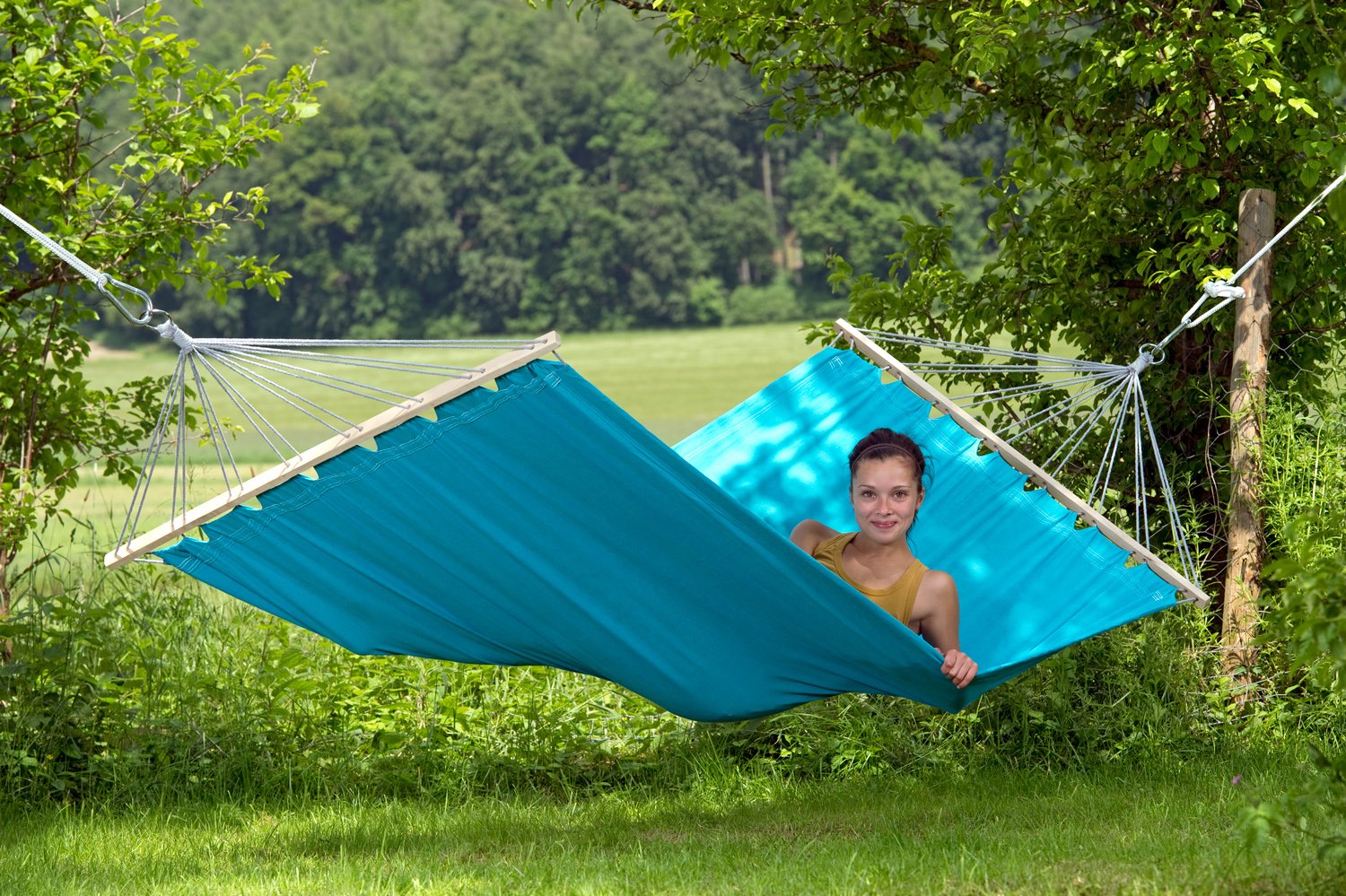 Grâce aux barres servant d’écarteurs, le hamac ne se referme pas lorsque l’on monte dedans. Les barres apportent aussi plus de stabilité, ce qui rend le hamac encore plus confortable.