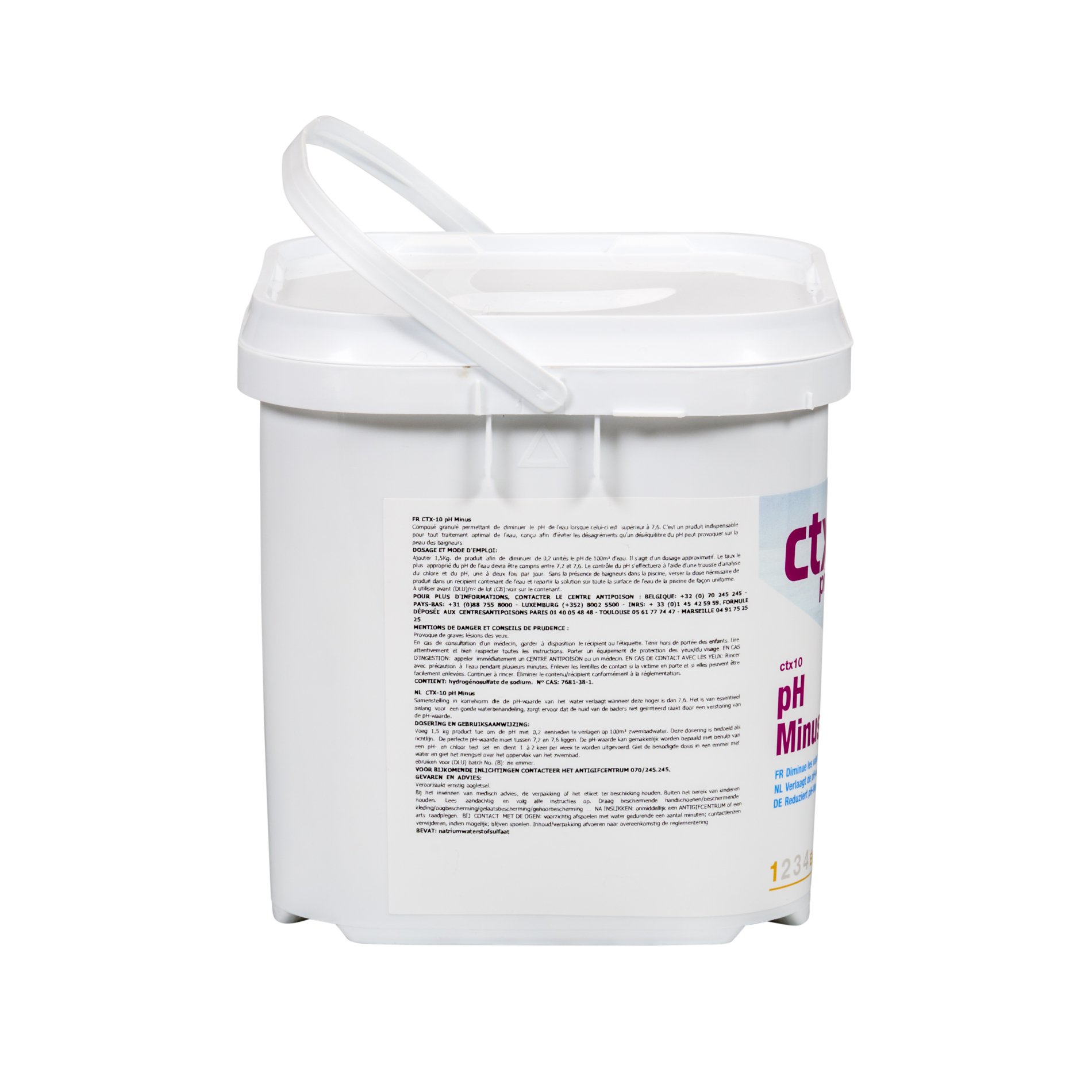 CTX pH Minus 5 kg aide à réduire le pH de l'eau. Un pH correct (entre 7,2 et 7,6) garantit une eau cristalline, prévient les irritations de la peau et des yeux et optimise l'efficacité des autres produits chimiques. Cette poudre réductrice de pH est facile à doser et se dissout rapidement, ce qui la rend idéale pour le traitement régulier de l'eau et l'entretien de votre piscine.